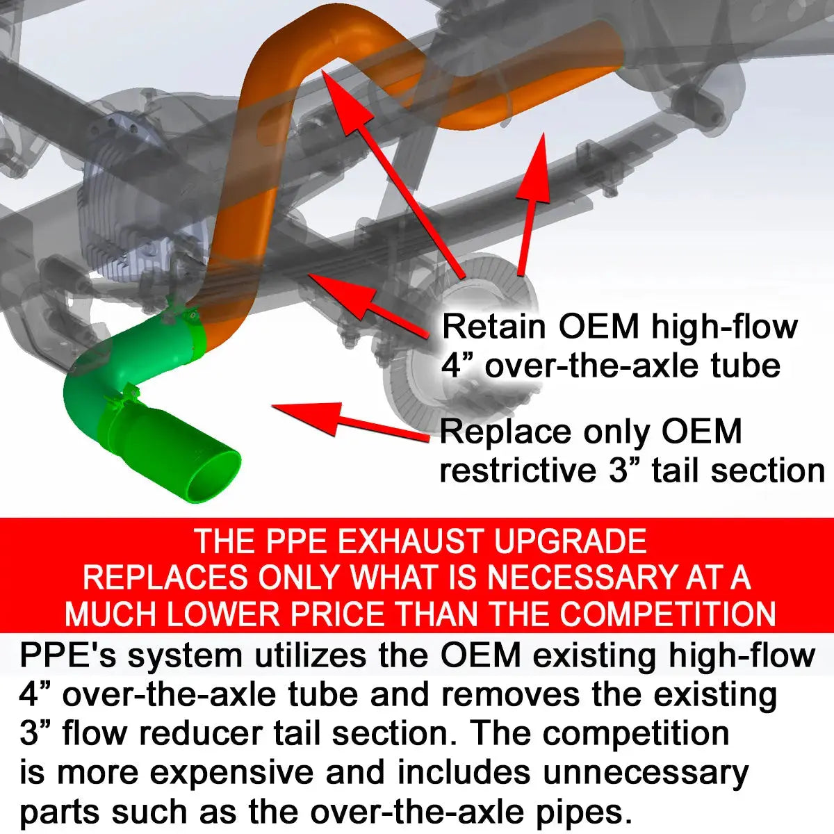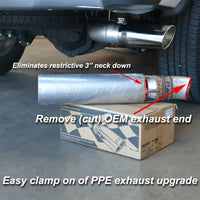 The PPE 4-Inch Performance Exhaust Upgrade installs as a direct replacement for the factory exhaust system, offering a simple and effective upgrade. Perfect for vehicle owners seeking to improve exhaust efficiency, enhance power, and achieve a bolder exhaust sound.