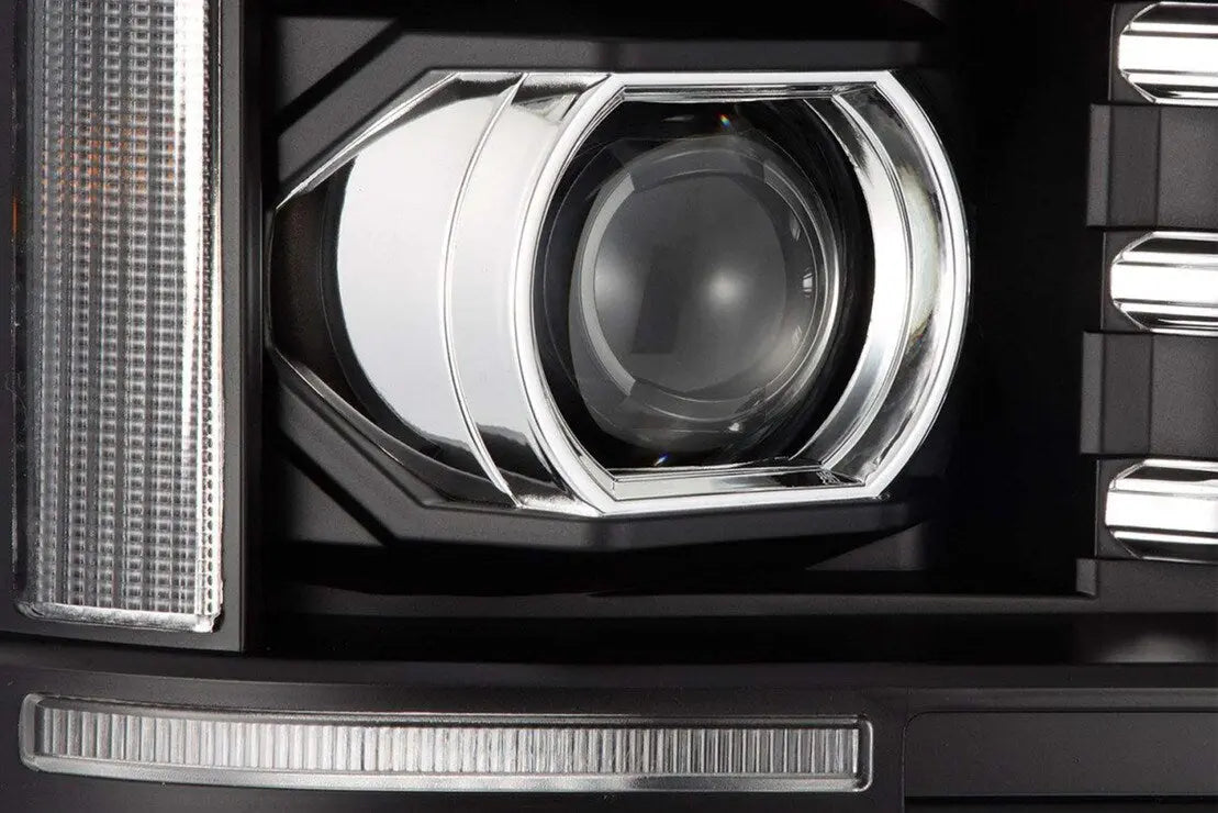 These projector headlights come in a variety of housing options: chrome for a stock look, matte black for a sportier vibe, and shiny midnight black for a luxury, high-end appearance. The glossy black versions combine sleek, glossy finishes with black paint, offering a blend of sporty and luxurious design for any color truck and front grille.