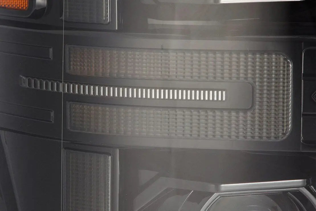The AlphaRex Luxx-Series headlights are based on the stock design of the Ford Super Duty but take it to the next level with an LED tube around the edge, which functions as a daytime running light (DRL) and sequential turn signal. An amber reflector and halogen bulbs complement the turn signal light, while the headlights also feature AlphaRex’s signature activation light—a dynamic running light that activates when you unlock your truck. The outer projector handles the low beam, while the inner projector is responsible for the high beam, both powered by LED chips developed in-house by AlphaRex.