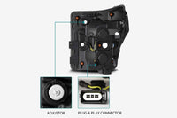 The AlphaRex PRO-Series headlights retain the stock design but feature an added LED tube around the edge that functions as a daytime running light (DRL). Additionally, an amber reflector and halogen turn signal bulbs are located on the side for a clean, functional appearance. These dual-projector headlights are designed with the outer projector handling the low beam and the inner projector for the high beam, both utilizing standard H7 halogen bulbs. For those seeking improved brightness, these headlights can be upgraded with high-output LED bulbs for even more light on the road.