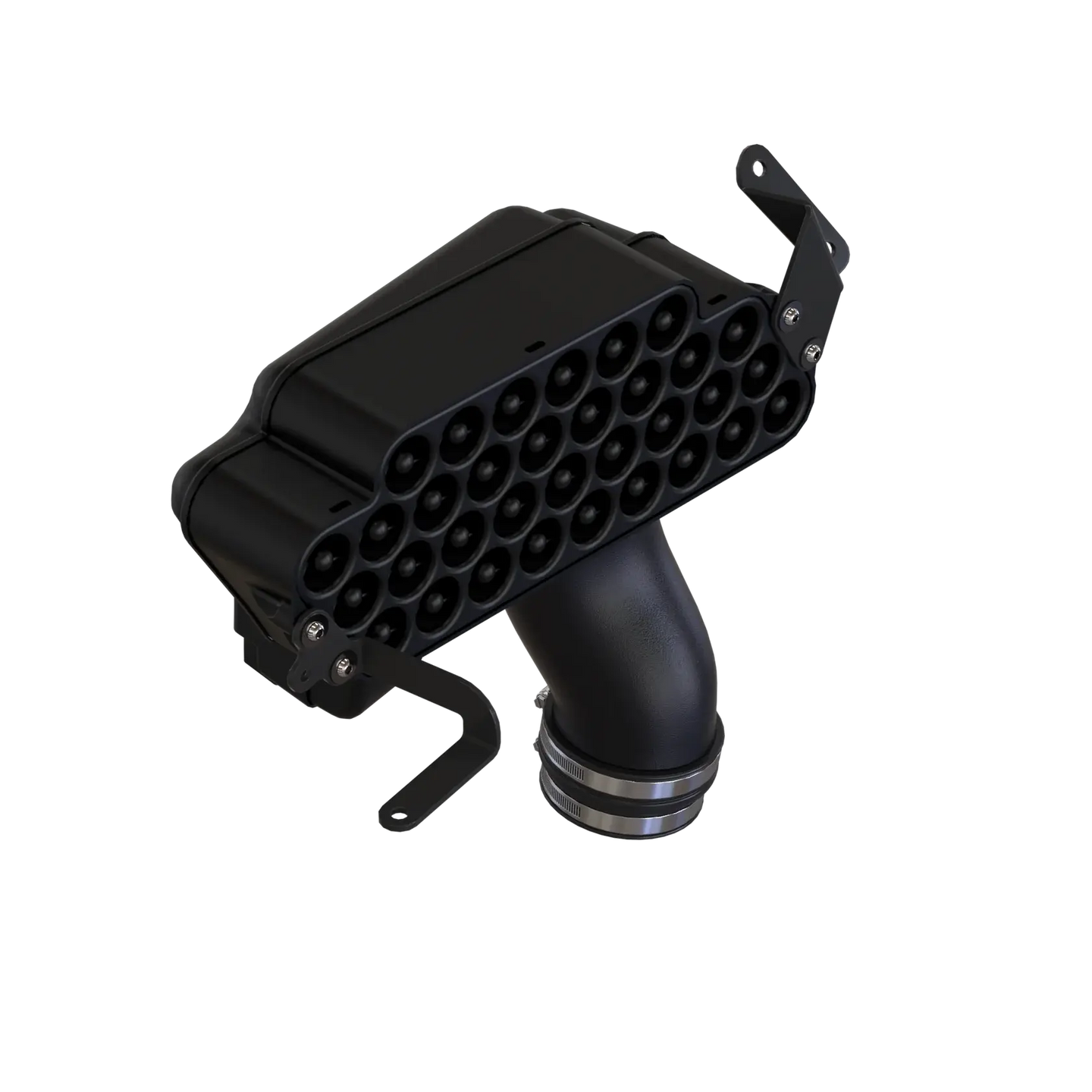 The S&B Particle Separator is designed for seamless integration with your vehicle's cold air intake system. It fits inside the cold air scoop and the optional factory ram air roof scoop, maintaining unrestricted airflow while separating out 96.7% of the dust and debris before feeding the clean air into your stock intake. This keeps your engine cleaner and prolongs the life of your air filter. Its remote mounting capability allows room to mount other essential accessories without compromising performance or space.